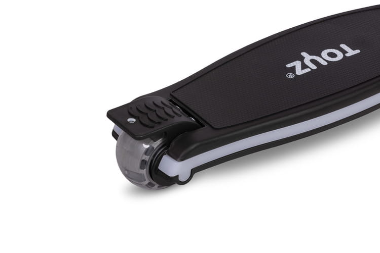 Για ακόμα περισσότερη διασκέδαση, το πατίνι είναι εξοπλισμένο με φωτιζόμενους τροχούς που αναβοσβήνουν κατά την κίνηση και LED λωρίδα που λειτουργεί με μπαταρίες. Τα πολύχρωμα φωτεινά εφέ αυξάνουν την ορατότητα και την ασφάλεια του παιδιού, ενώ προσθέτουν ενθουσιασμό σε κάθε βόλτα.