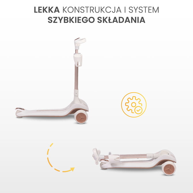 Για τους μικρότερους χρήστες, το πατίνι έχει ελαφριά κατασκευή, διευκολύνοντας το παιδί να το χειρίζεται και να το μεταφέρει μόνο του. Το γρήγορο σύστημα αναδίπλωσης επιτρέπει το δίπλωμα του πατινιού με μία κίνηση, ιδανικό για όσους ταξιδεύουν συχνά.