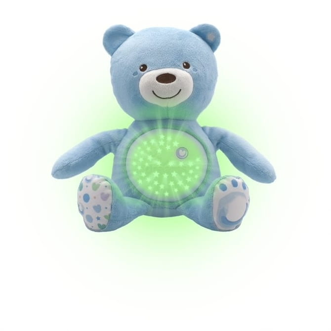Το αρκουδάκι με προβολέα από τη σειρά Chicco First Dreams είναι ένα λούτρινο, απαλό αρκουδάκι με μηχανισμό κρυμμένο στην κοιλίτσα που προβάλλει πολύχρωμα αστέρια και παίζει έως και 30 λεπτά ηχητικών εφέ όπως: κλασική μουσική (Bach και Beethoven), τζαζ, soft rock και New Age καθώς και ήχους της φύσης.