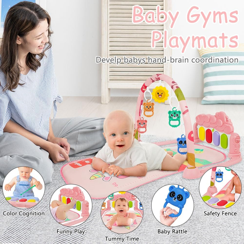 Εκπαιδευτικό χαλάκι με πιανάκι — 5 κρεμαστά παιχνίδια, φώτα και ήχοι, 3 λειτουργίες, από 0 μηνών+