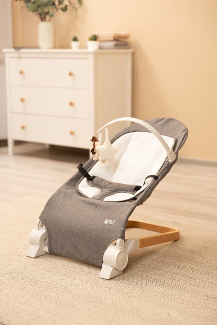 Το ρηλάξ PINE εντυπωσιάζει όχι μόνο με την πρακτικότητά του, αλλά και με τον σχεδιασμό του. Το αποσπώμενο τόξο με λούτρινα παιχνίδια θα διασκεδάσει το παιδί, ενώ η κομψή ξύλινη βάση προσθέτει στυλ και ταιριάζει τέλεια στη διακόσμηση του παιδικού δωματίου.
