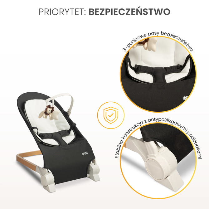 - προηγμένη ασφάλεια - για την ασφάλεια των μικρότερων χρηστών, το PINE είναι εξοπλισμένο με ζώνες ασφαλείας που αποτρέπουν την πτώση του παιδιού από το ρηλάξ