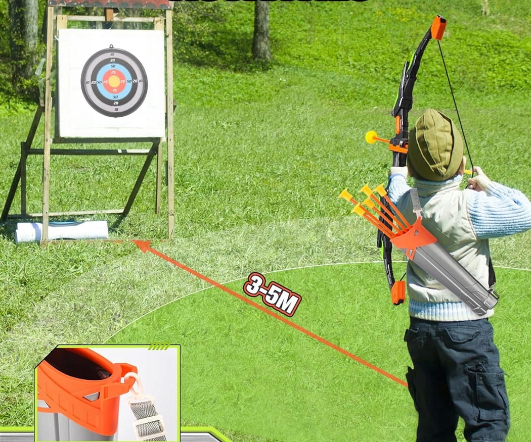 - Το σετ περιλαμβάνει στόχο, φαρέτρα και 5 βέλη με βεντούζες.