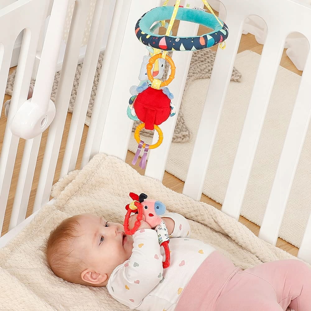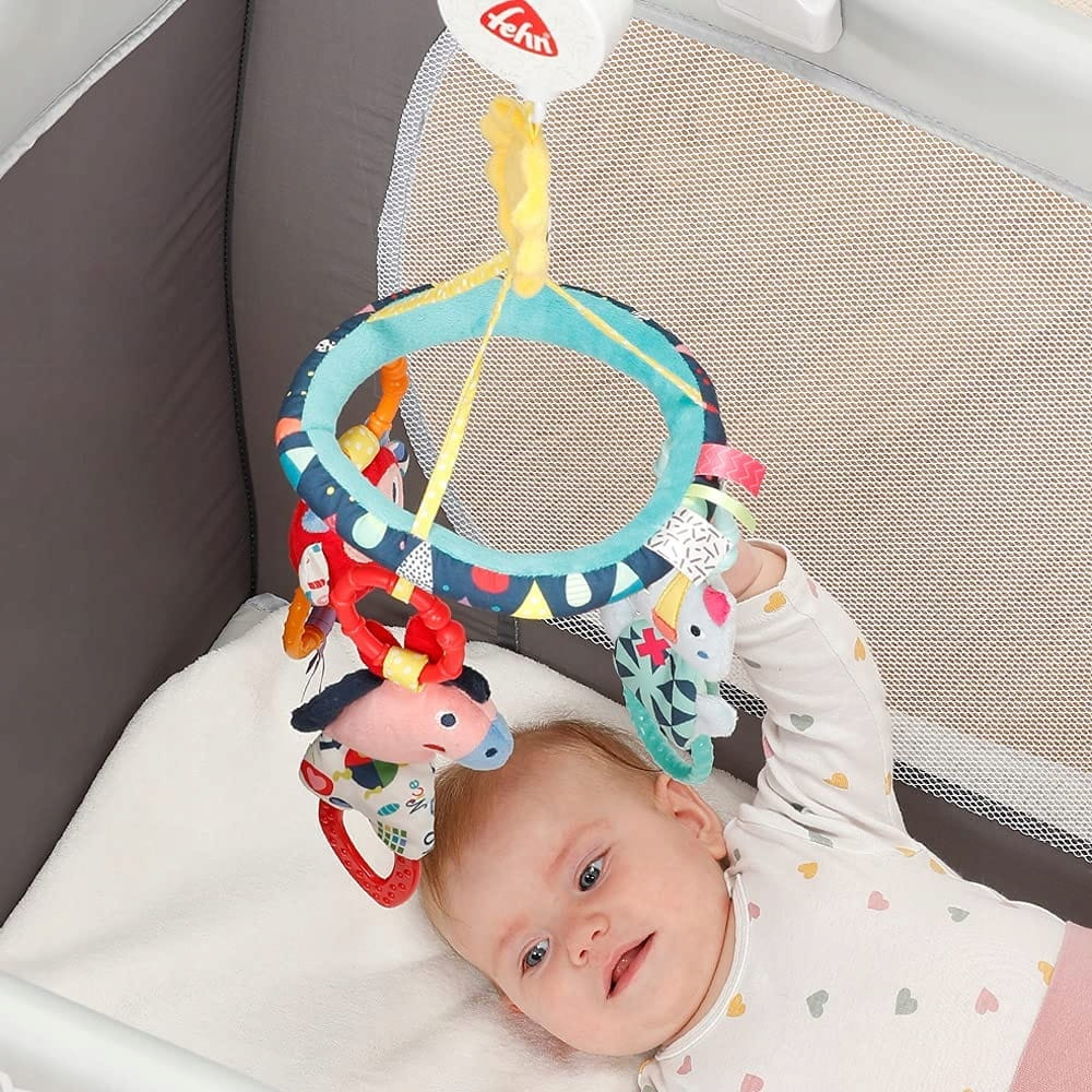 - Το πολύχρωμο καρουζέλ διαθέτει καθρέφτη, λαβές και μασητικό.