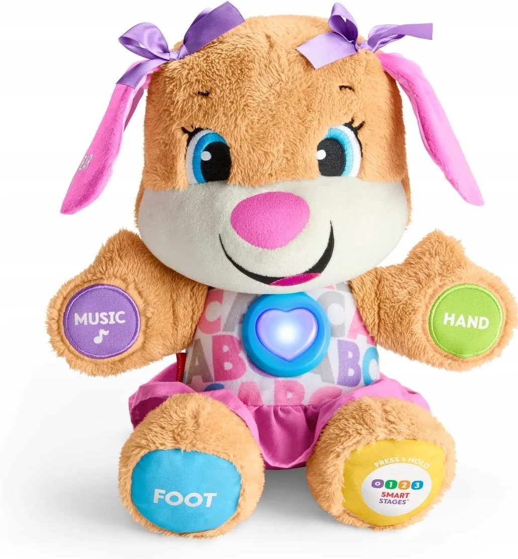 Καλωσορίστε τον πρώτο καλύτερο φίλο του παιδιού σας! Το κουταβάκι είναι μαλακό, λατρεύει τις αγκαλιές και είναι έτοιμο να αποδείξει ότι η μάθηση είναι διασκέδαση! Αντιδρά στην αφή του μωρού με χαρούμενα τραγούδια και φράσεις που διδάσκουν πάνω από 100 πρώτες λέξεις, ονόματα μερών του σώματος, χρώματα, σχήματα και πολλά άλλα! Εκπαιδευτικό περιεχόμενο στα πολωνικά! Και επειδή κάθε παιδί μαθαίνει με τον δικό του ρυθμό, το κουταβάκι διαθέτει ενσωματωμένη τεχνολογία «Επίπεδα μάθησης» – που σας επιτρέπει να επιλέξετε το επίπεδο που είναι πιο κατάλληλο για το στάδιο ανάπτυξης του παιδιού. Το παιχνίδι προσφέρει πολλά τραγούδια, ήχους και φράσεις σε κάθε ένα από τα τρία επίπεδα παιχνιδιού. Επιπλέον, η πολύχρωμη φωτιζόμενη καρδούλα του κουταβιού αναβοσβήνει στον ρυθμό της μουσικής! Επίπεδο 1 – Ανακάλυψη – Το παιδί πατάει τα πατουσάκια, το πόδι, την καρδιά, τη μύτη ή το αυτί του κουταβιού και ακούει πρώτες λέξεις, χρώματα, αλφάβητο, ονόματα μερών του σώματος και άλλα! Επίπεδο 2 – Ενθάρρυνση – Σε αυτό το επίπεδο, χαρούμενες φράσεις ανταμείβουν τα παιδιά και τα ενθαρρύνουν να μετρούν μαζί, να βρίσκουν χρώματα και να δείχνουν μέρη του σώματος! Επίπεδο 3 – Μίμηση – Φράσεις και τραγούδια για να τραγουδήσετε μαζί με το κουταβάκι ενθαρρύνουν το παιχνίδι με φαντασία και το ρόλο, βοηθώντας στην ανάπτυξη του λεξιλογίου του παιδιού!