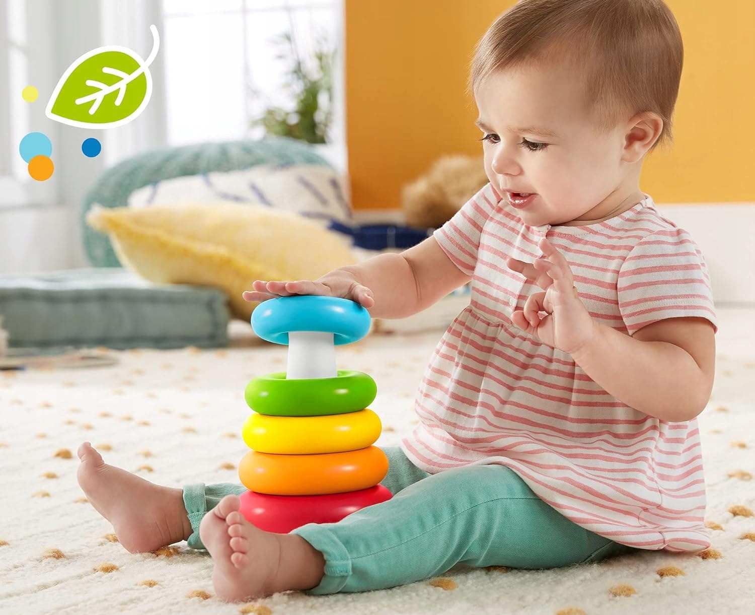 - Το παιδί μπορεί να τα πιάσει και να τα στοιβάξει στη βάση που κουνιέται.