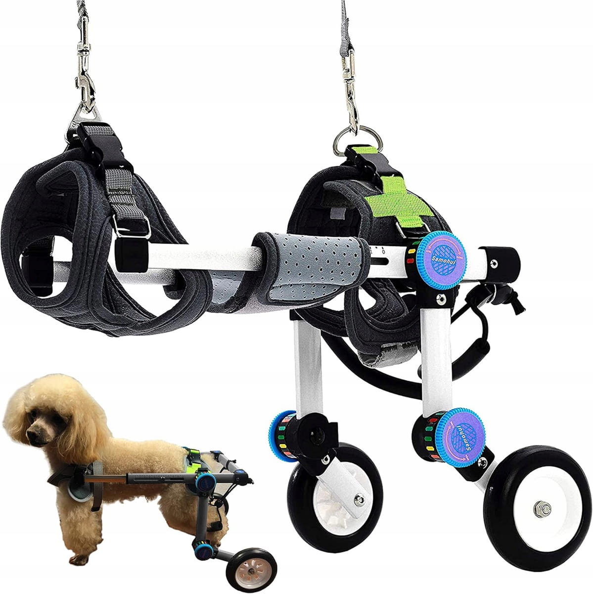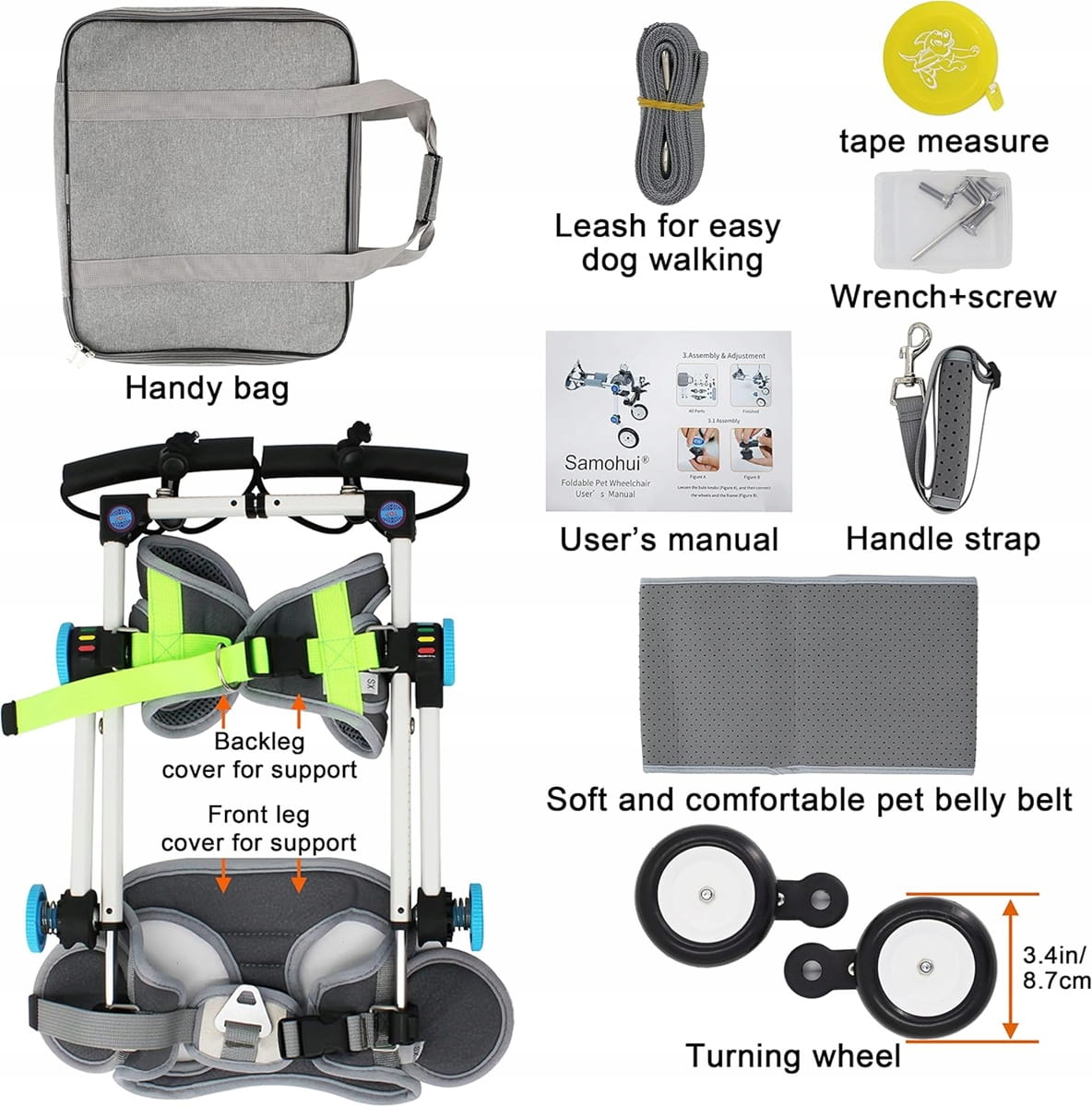 - [Υλικά και χαρακτηριστικά]: Ελαφρύ και ανθεκτικό, το ΑΝΑΠΗΡΙΚΟ ΚΑΡΟΤΣΑΚΙ ΓΙΑ ΣΚΥΛΟΥΣ έχει υψηλή σκληρότητα και ελαφρότητα, προσφέροντας συνολική αντοχή στο καροτσάκι, ενώ το υλικό του ιμάντα είναι μαλακό και δεν τραυματίζει τα ζώα.