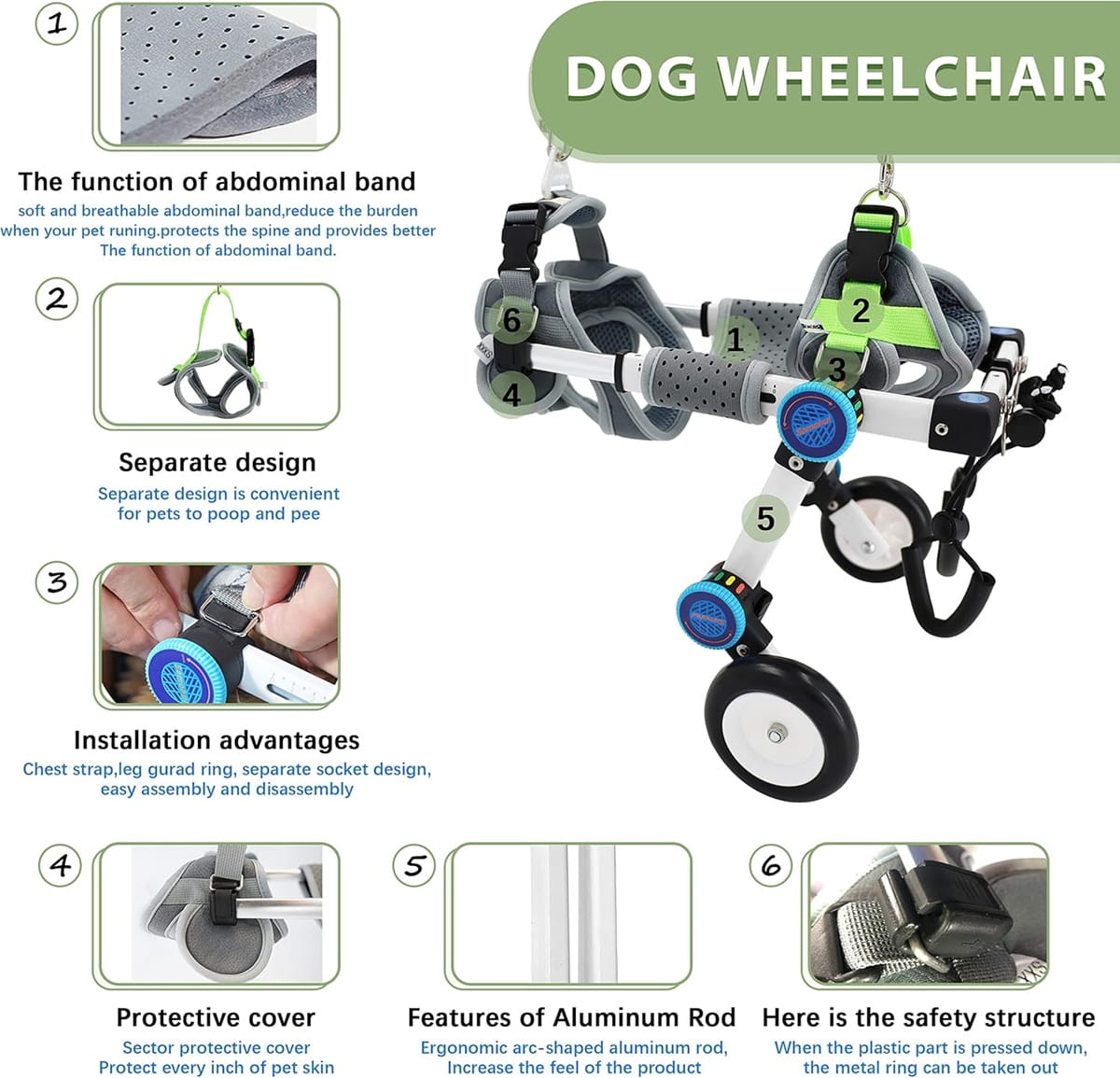 - [Συγκινητικός σχεδιασμός]: Τα κατοικίδια ζώα μπορεί να αντιμετωπίζουν δυσκολίες με άβολες κινήσεις στην καθημερινή ζωή. Η μακροχρόνια αδυναμία άσκησης επηρεάζει το ζώο και μειώνει την αυτοπεποίθησή του. Το ΑΝΑΠΗΡΙΚΟ ΚΑΡΟΤΣΑΚΙ ΓΙΑ ΚΑΤΟΙΚΙΔΙΑ έχει σχεδιαστεί για να βοηθά τα ζώα με ΤΡΑΥΜΑΤΙΣΜΕΝΑ Ή ΑΝΑΠΗΡΑ ΠΙΣΩ ΠΟΔΙΑ να περπατούν, να τρέχουν και να παίζουν ελεύθερα, βοηθώντας τα να επιστρέψουν σε μια φυσιολογική ζωή.