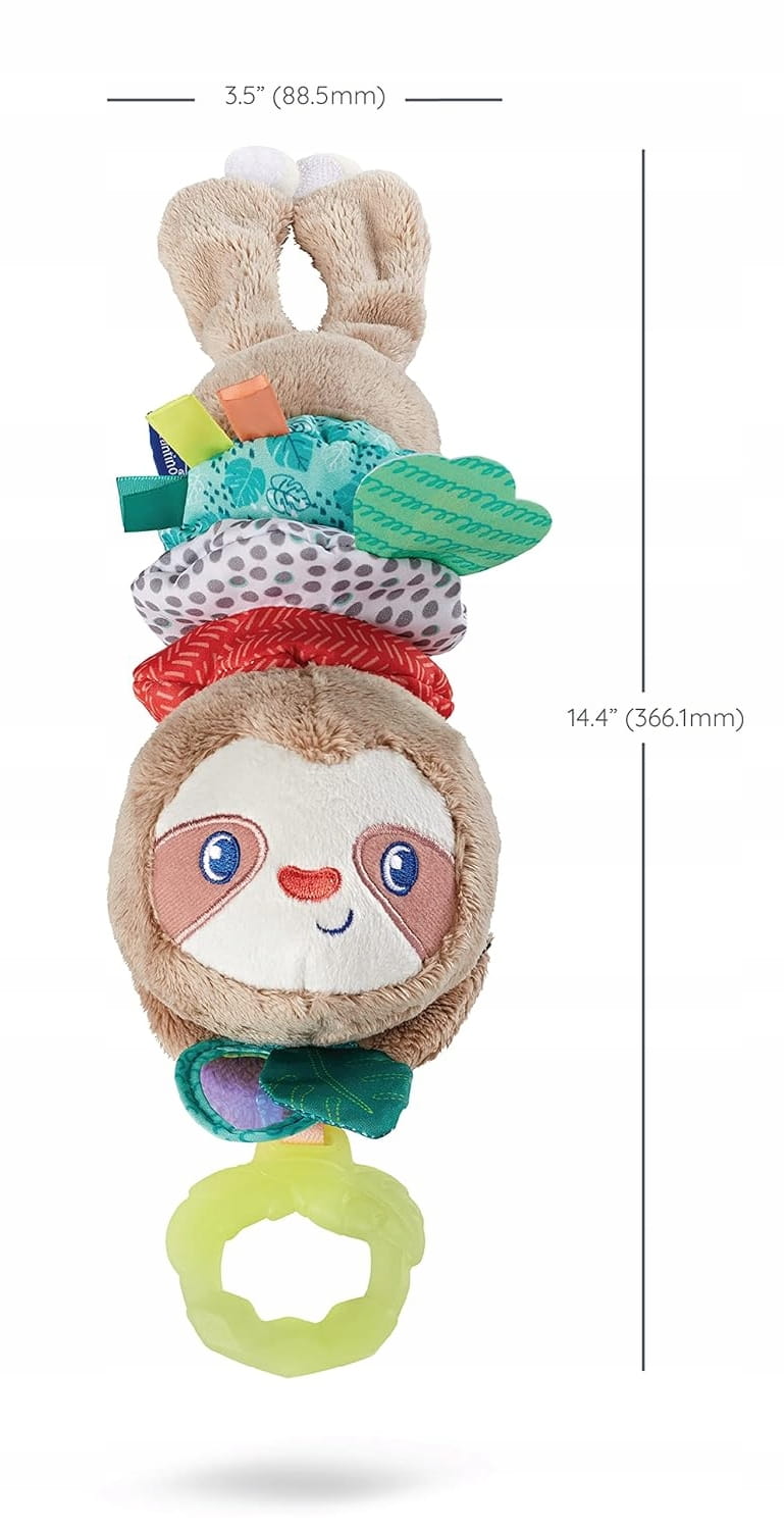 - Εξερεύνηση υφασμάτων: Αυτό το κρεμαστό λούτρινο βραδύποδα βοηθά στην ανάπτυξη της εξερεύνησης υφασμάτων του παιδιού χάρη στο ενσωματωμένο μασητικό με πολλές υφές και σχήματα, ιδανικό για όλα τα στάδια της οδοντοφυΐας.