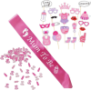Δημιουργήστε μια γλυκιά, ροζ διακόσμηση για το πάρτι σε λίγα λεπτά. Το σετ DELUXE «όλα σε ένα» περιλαμβάνει κομψή κορδέλα για τη μέλλουσα μαμά, αξεσουάρ για φωτογραφίες και κομφετί σε αποχρώσεις του ροζ. Ανοίγετε, διακοσμείτε και... έτοιμο!