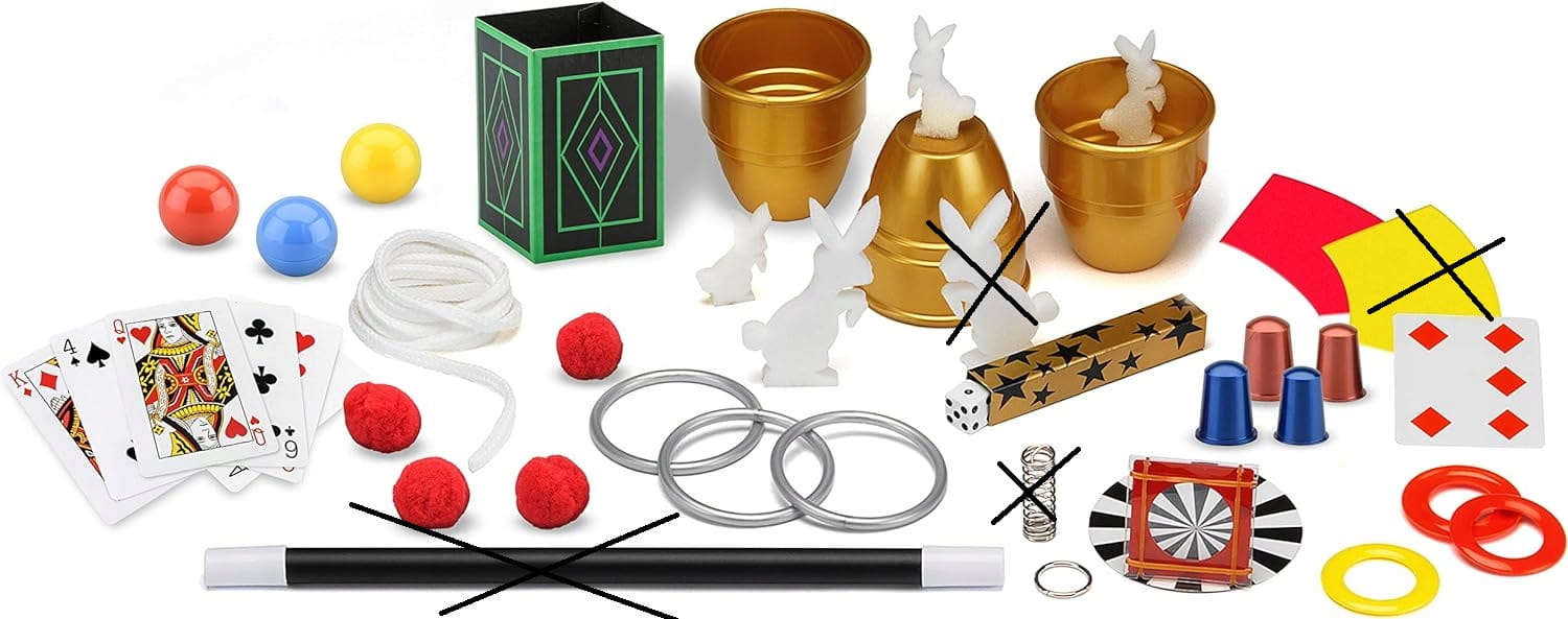 - Στο σετ λείπουν 4 αντικείμενα (φύλλο, μεγάλο κουνέλι, μαρκαδόρος, ελατήριο).