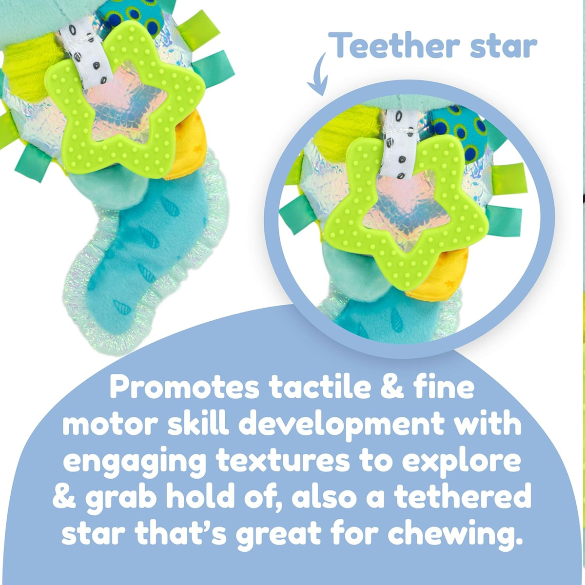 - Ενθαρρύνει το παιδί να πιάνει και να αγγίζει, υποστηρίζοντας την ανάπτυξή του και διεγείροντας τις αισθήσεις του.