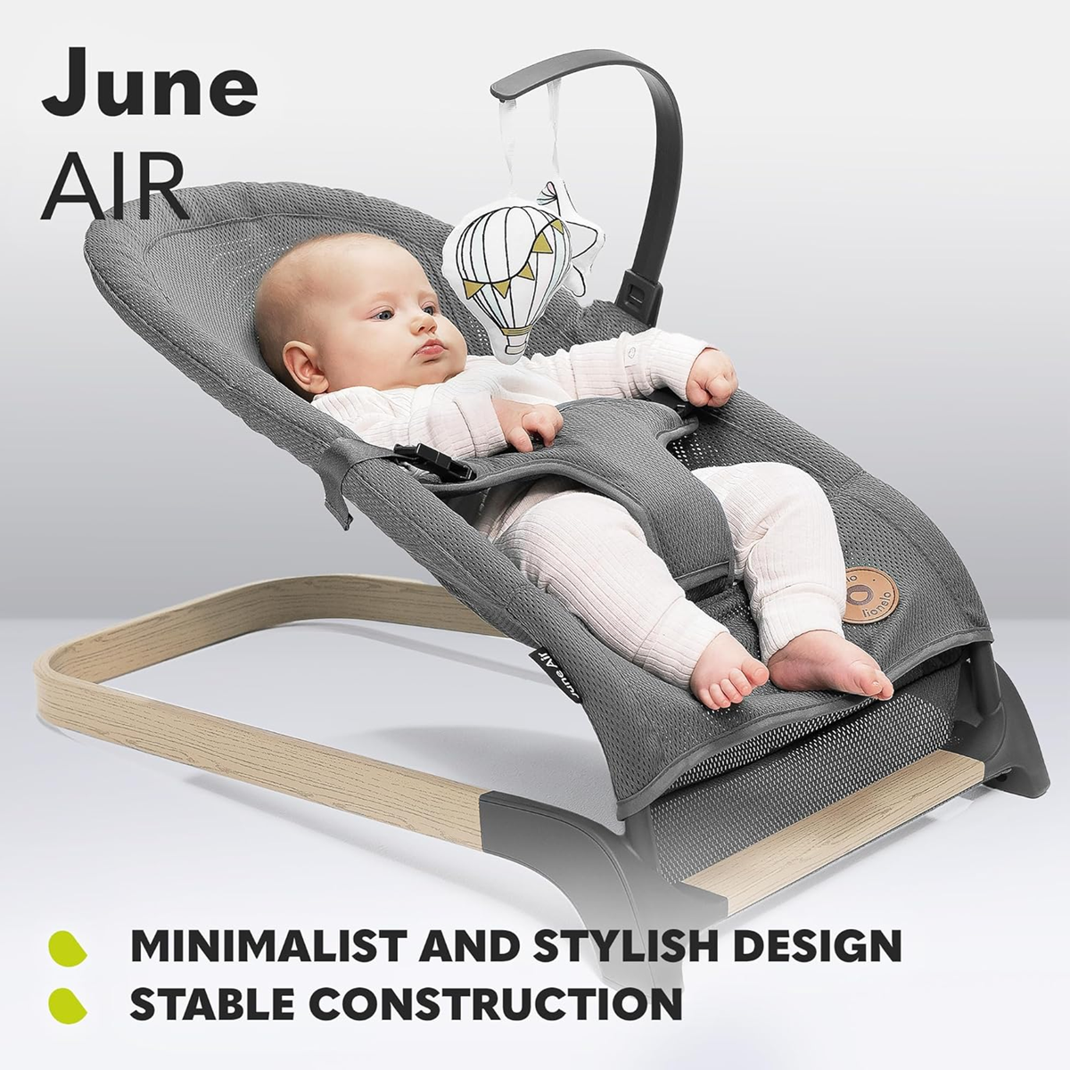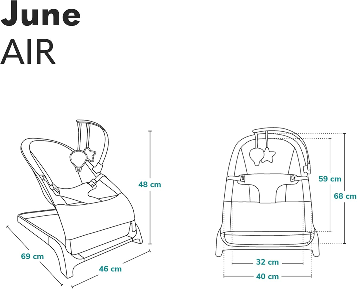 - Χάρη στο μικρό βάρος και τη δυνατότητα συμπαγούς αναδίπλωσης, το ρηλάξ Lionelo June Air είναι εύκολο στην αποθήκευση και μεταφορά