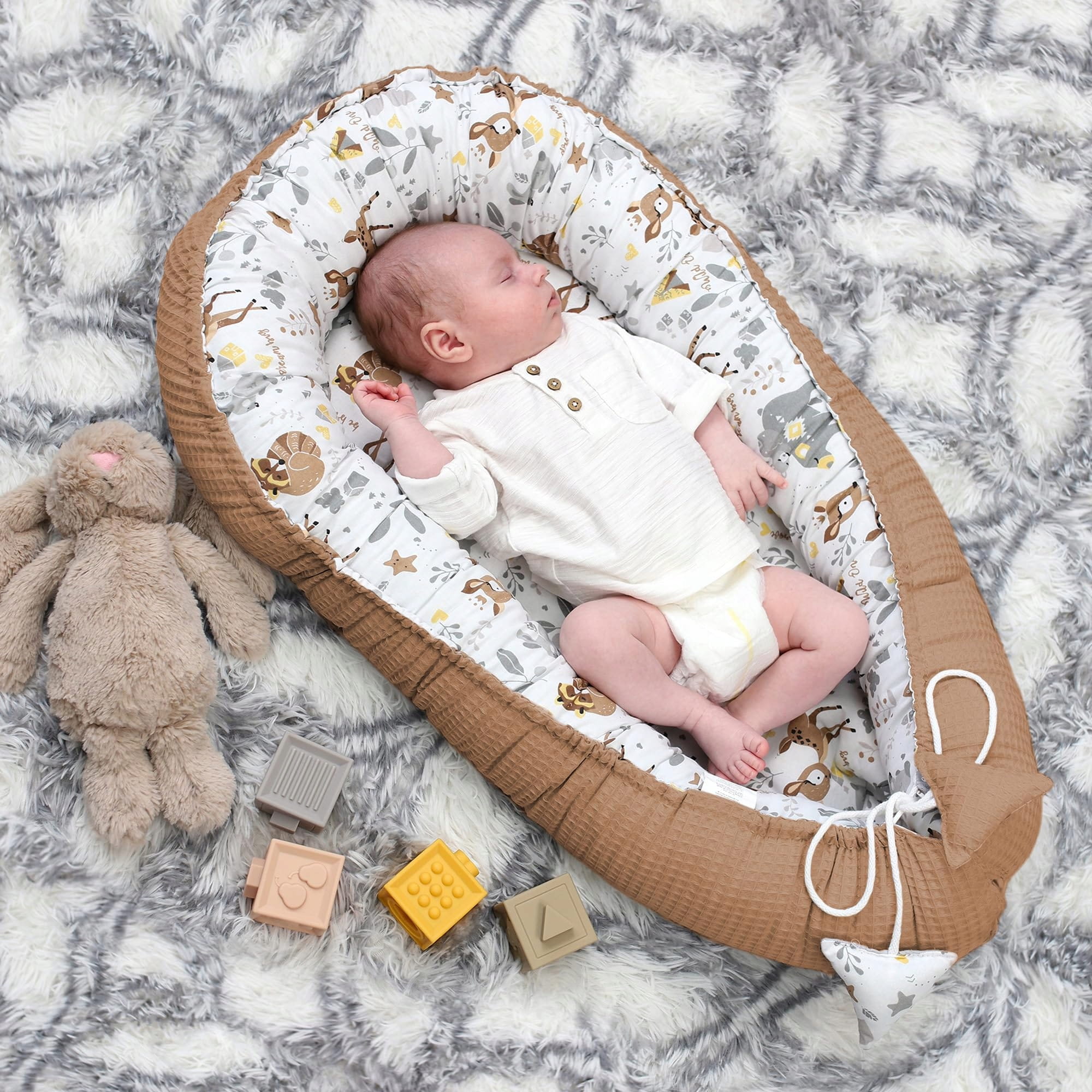 - ΜΠΟΡΕΙ ΝΑ ΒΡΙΣΚΕΤΑΙ ΠΑΝΤΟΥ - φορητό βρεφικό κοκόνι για χρήση σε κούνια, λίκνο, καρότσι, στον καναπέ, ως ταξιδιωτικό κρεβατάκι, καρότσι - μείωση χώρου, αλλαξιέρα ή μαξιλάρι θηλασμού.