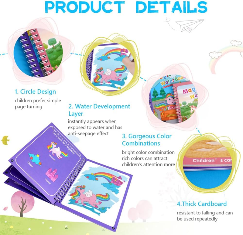 - ? ΜΟΝΑΔΙΚΟ ΔΩΡΟ ΓΙΑ ΠΑΙΔΙΑ - Το μαγικό βιβλίο ζωγραφικής είναι ένα εξαιρετικό εκπαιδευτικό παιχνίδι για βρέφη, κατάλληλο για την καλλιέργεια της φαντασίας και των κινητικών δεξιοτήτων του παιδιού, καθώς και για τη βελτίωση του συντονισμού χεριού-ματιού. Χωράει εύκολα στο σακίδιο του παιδιού σας, καθιστώντας το ιδανικό παιχνίδι για ταξίδια με αυτοκίνητο ή αεροπλάνο. Κατάλληλο επίσης ως δώρο για γενέθλια, Χριστούγεννα, γιορτές ή Παιδική Ημέρα.