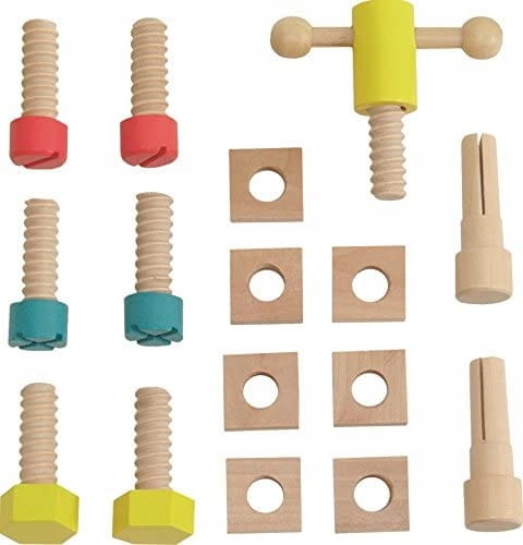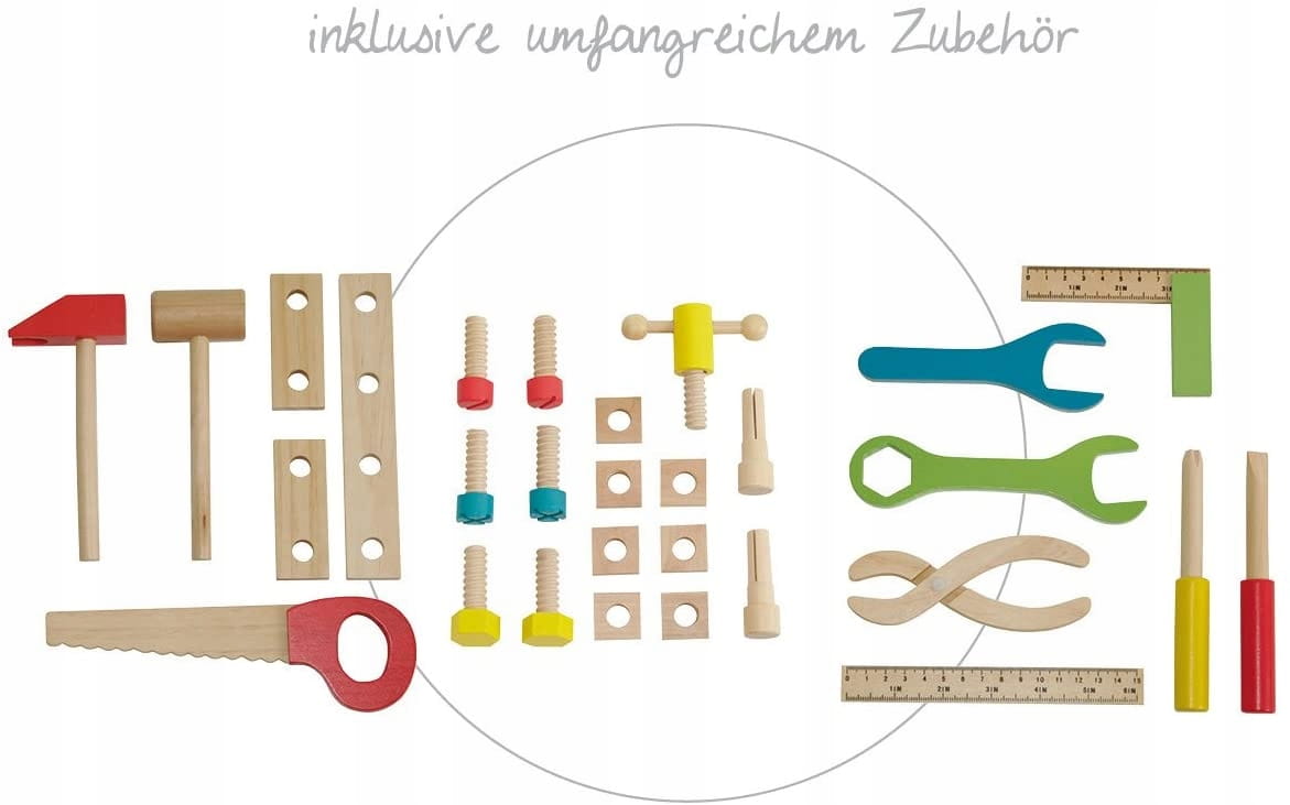 - Εδώ είναι η μέγγενη πλούσια σε εργαλεία, όπως σφυρί, πριόνι και πολλά βίδες και παξιμάδια στο σετ - κατάλληλη τροχαλία και κατασκευαστικό παιχνίδι για μικρούς επαγγελματίες