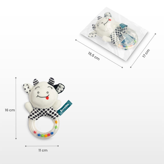Η κουδουνίστρα για βρέφη σε αντιθετικές αποχρώσεις μαύρου και λευκού έχει σχεδιαστεί για να διεγείρει την όραση και την αισθητηριακή ανάπτυξη του μωρού. Εξοπλισμένη με εργονομική λαβή, ταιριάζει τέλεια στα μικρά χεράκια του παιδιού, επιτρέποντας εύκολο κράτημα. Στο εσωτερικό υπάρχουν απαλά χάντρες που με κάθε κίνηση παράγουν έναν διακριτικό ήχο, υποστηρίζοντας την ανάπτυξη της ακοής και του συντονισμού.