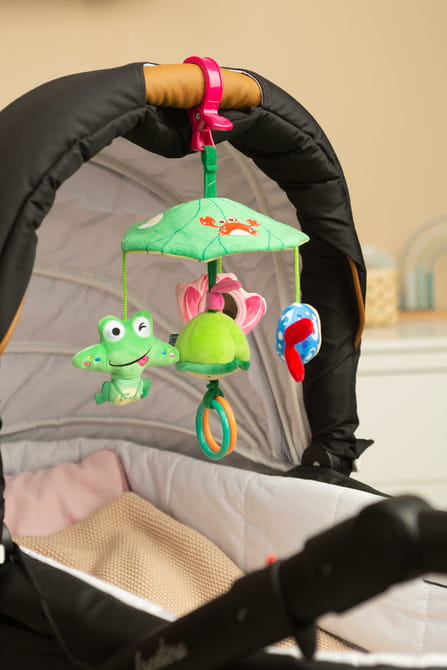 Η πρακτική και εύχρηστη λαβή επιτρέπει την εύκολη τοποθέτηση σε καρότσι, κάθισμα αυτοκινήτου ή κρεβατάκι, ώστε το παιχνίδι να είναι πάντα στη διάθεση του μωρού. Η σταθερή στερέωση εξασφαλίζει σταθερότητα και τα ανθεκτικά υλικά εγγυώνται ατελείωτες ώρες χαρούμενου παιχνιδιού – στο σπίτι, στη βόλτα και στο ταξίδι!