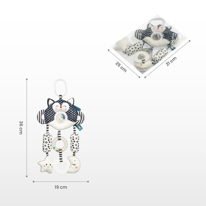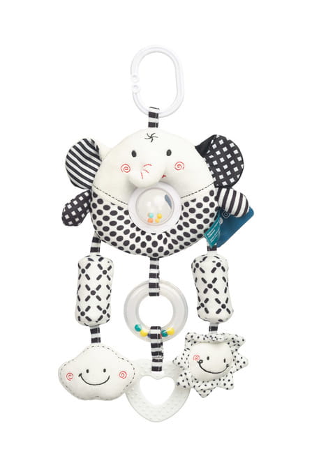 Χάρη στη βολική, καθολική λαβή, μπορείτε εύκολα να το τοποθετήσετε στο καρότσι, το κάθισμα αυτοκινήτου ή την κούνια, ώστε το παιχνίδι να είναι πάντα στη διάθεσή σας.