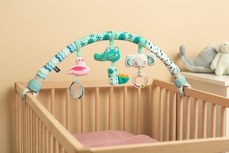 Χάρη στην καθολική τοποθέτηση, το τόξο μπορεί να τοποθετηθεί εύκολα όχι μόνο στην κούνια, αλλά και στο καρότσι και το κάθισμα αυτοκινήτου, προσφέροντας διασκέδαση στο παιδί κατά τη διάρκεια του ταξιδιού ή των περιπάτων.