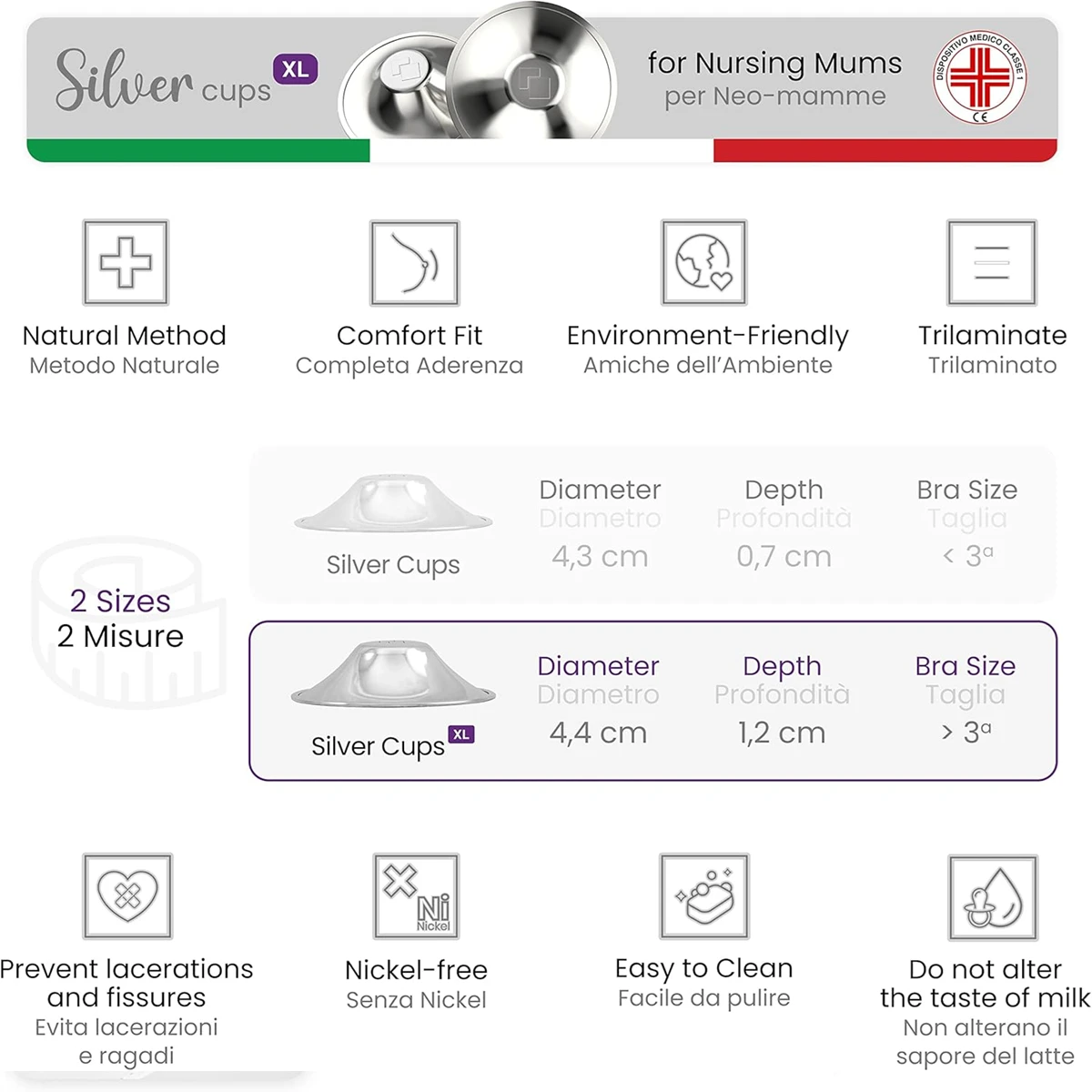 - Ανθεκτικά και εύκολα στη χρήση: Τα προστατευτικά SilverCups είναι κατασκευασμένα από τριπλό στρώμα ασημιού, εξασφαλίζοντας αντοχή και μακροζωία. Είναι επαναχρησιμοποιούμενα και αποτελούν πρακτική λύση για θηλάζουσες μητέρες