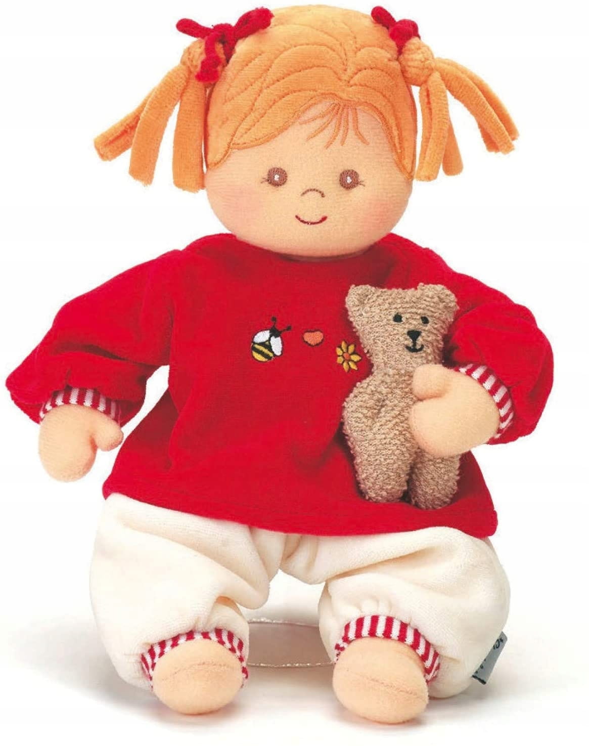 - Όμορφη κούκλα για βρέφη από τη γέννηση με κεντημένο πρόσωπο και γλυκό αρκουδάκι