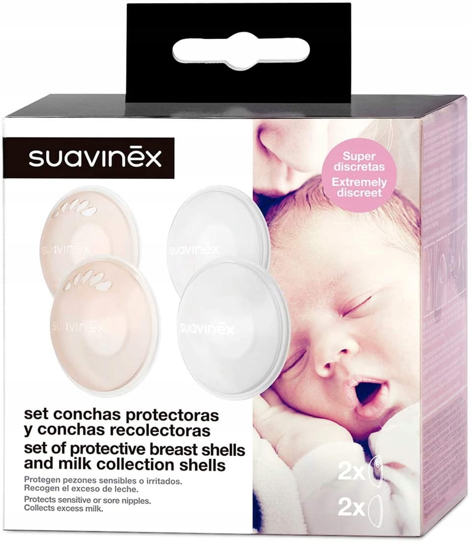 - Σετ προστατευτικών καλυμμάτων που αποτρέπουν την τριβή των ρούχων με το ευαίσθητο ή τραυματισμένο στήθος· περιλαμβάνει ένα ζευγάρι κοχυλιών συλλογής για τη συλλογή απώλειας γάλακτος
