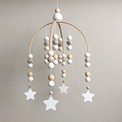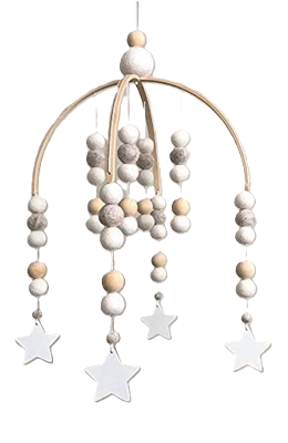 - Φυσικά υλικά: το κινητό καμπανάκι για την κούνια του μωρού είναι κατασκευασμένο από φιλική προς το περιβάλλον τσόχα και χάντρες πλεγμένες με βελονάκι, υψηλής ποιότητας ξύλινες χάντρες, ξύλινο κρεμαστό, μη τοξικό, φιλικό προς το περιβάλλον, ασφαλές, μπορεί να χρησιμοποιηθεί χωρίς ανησυχία, κατασκευασμένο από ακατέργαστο φυσικό μπαμπού, είναι πολύ ελαφρύ και μπορεί να κρεμαστεί στην κούνια ή σε άλλα σημεία.