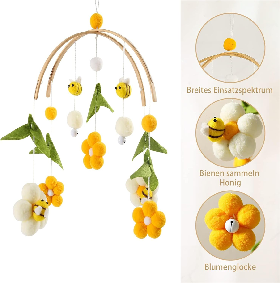 • Φυσικά υλικά: το κινητό καμπανάκι για την κούνια του μωρού είναι κατασκευασμένο από φιλική προς το περιβάλλον τσόχα και χάντρες πλεγμένες με βελονάκι, υψηλής ποιότητας ξύλινες χάντρες, ξύλινο κρεμαστό, μη τοξικό, φιλικό προς το περιβάλλον, ασφαλές, μπορεί να χρησιμοποιηθεί χωρίς ανησυχία, κατασκευασμένο από ακατέργαστο φυσικό μπαμπού, είναι πολύ ελαφρύ και μπορεί να κρεμαστεί στην κούνια ή σε άλλα σημεία.
