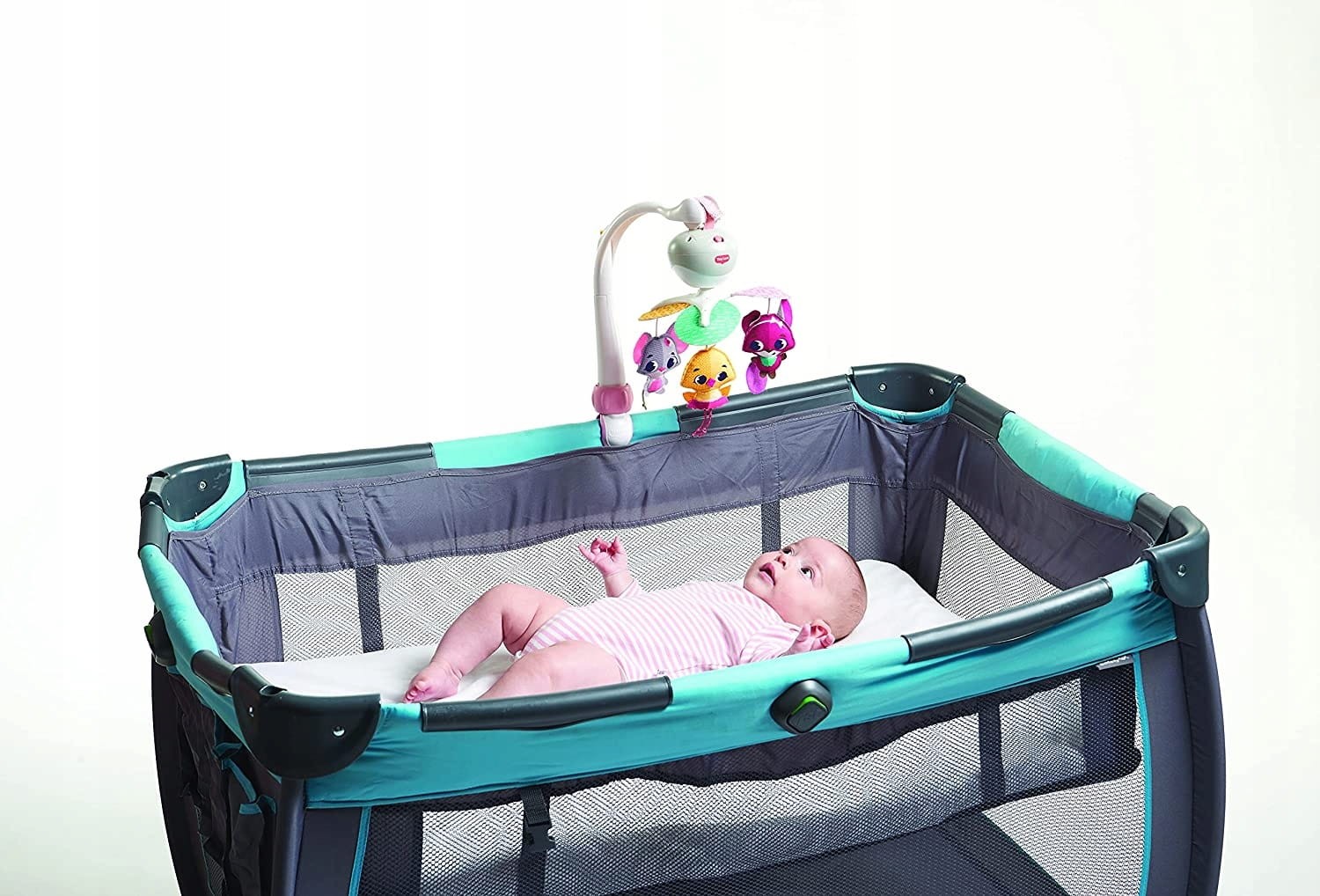 - Η στερέωση ταιριάζει στα περισσότερα βρεφικά κρεβάτια, λίκνα, πάρκα, καθίσματα αυτοκινήτου και καρότσια.