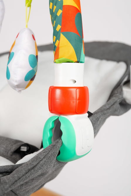 Χάρη στην καθολική τοποθέτηση, το τόξο μπορεί να τοποθετηθεί εύκολα όχι μόνο στην κούνια, αλλά και στο καρότσι και το κάθισμα αυτοκινήτου, προσφέροντας διασκέδαση στο παιδί κατά τη διάρκεια του ταξιδιού ή της βόλτας.