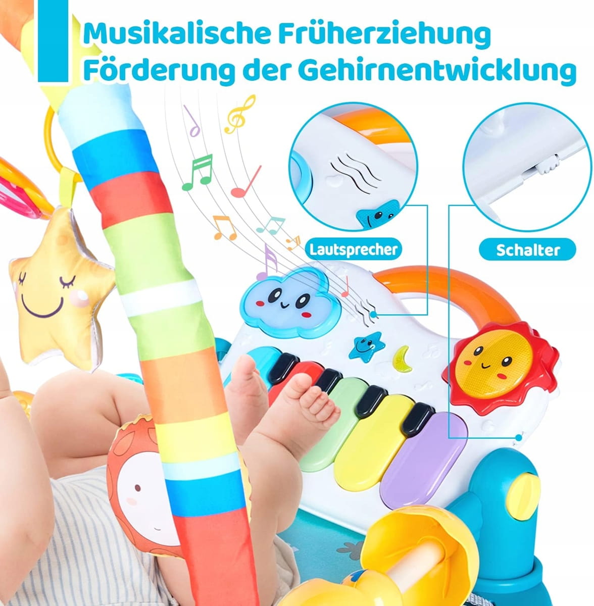 - Πολυλειτουργικό εκπαιδευτικό χαλί για βρέφη: Το παιχνίδι μας σε μορφή πιάνου με μουσική και ελαφρύ εκπαιδευτικό χαλί έχει σχεδιαστεί για να ενθαρρύνει το κλώτσημα, το παιχνίδι στην πλάτη και το κάθισμα, ενισχύοντας τους μύες των άκρων του παιδιού. Είναι το ιδανικό χαλί παιχνιδιού για βρέφη και μικρά παιδιά ηλικίας 0-3-6-12 μηνών και έως 1 έτους.
